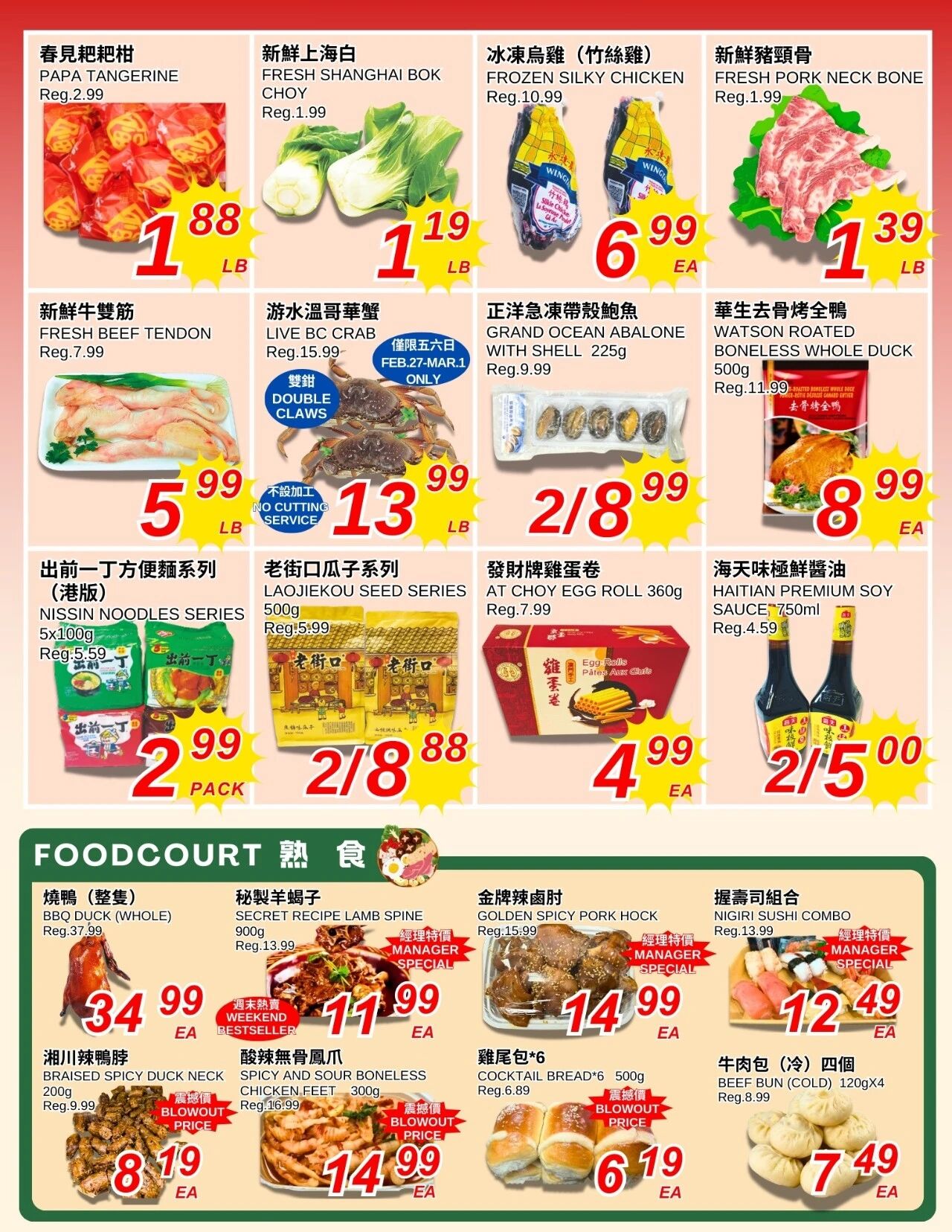 以上为豐泰超市B.C. Richmond 2026年2月27日至2026年3月5日的热销信息。如有排版错误,请以店内标示为准。优惠活动不适用于商业批发行为。