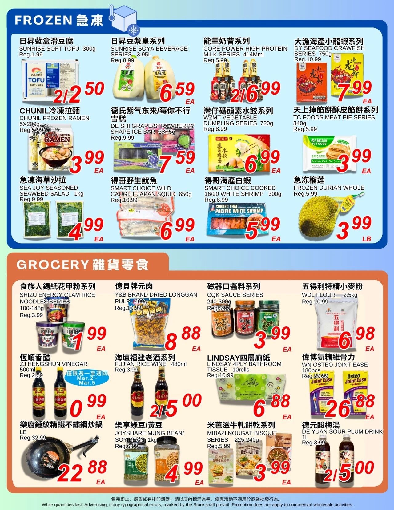 Prices in effect Feb.27 till Mar.5 2026, while quantities last. Advertising, if any typographical errors, marked by the store shall prevail.promotion does not apply to commercial wholesale activities.
